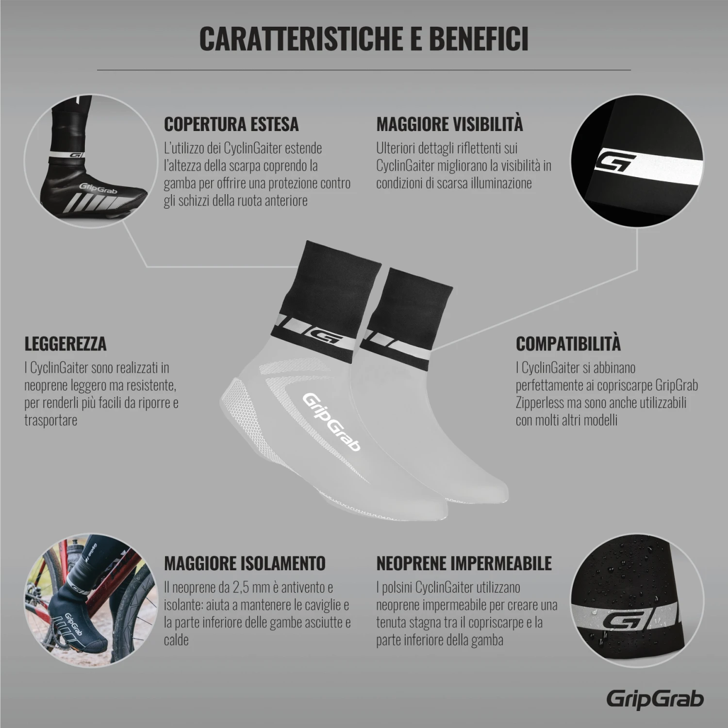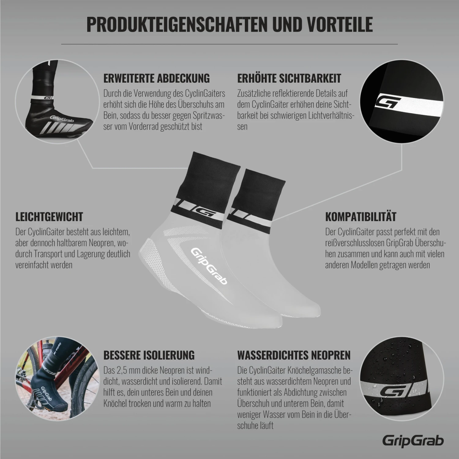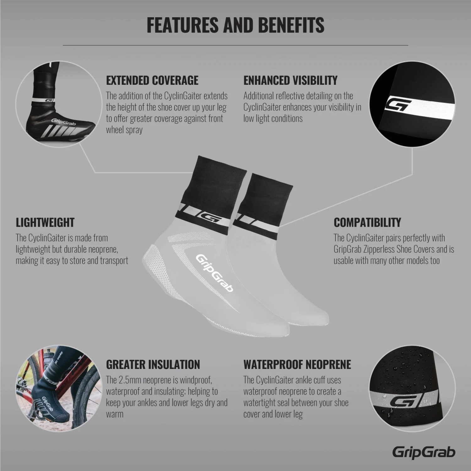 Kenmerken van de GripGrab CyclinGaiter Regenweer Overschoen Seal