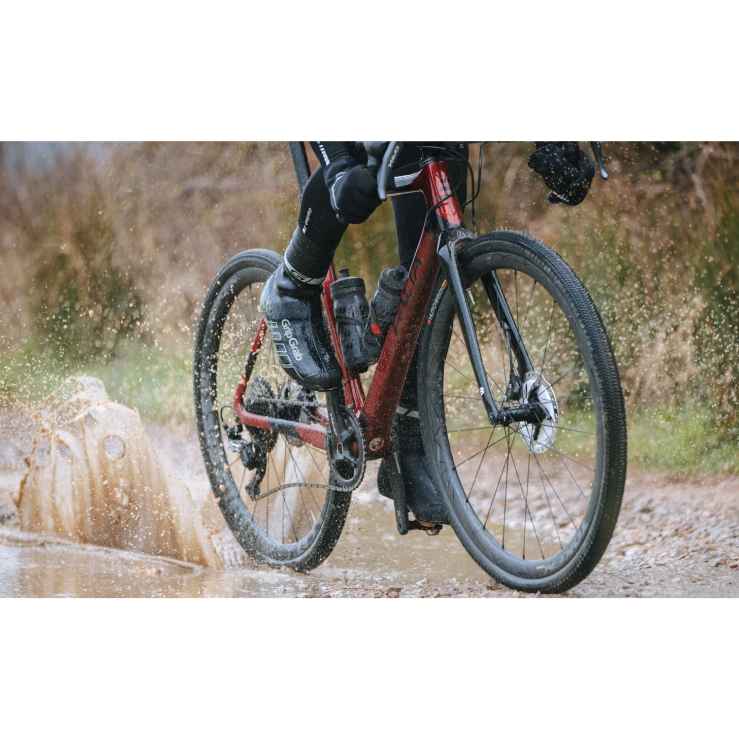 De GripGrab CyclinGaiter is een innovatieve oplossing voor waterdoorlatende overschoenen. Het nauwsluitende product wordt tussen uw beenwarmers en overschoenen aangebracht, zodat het water dat langs uw kuiten naar beneden loopt, over deze brug tussen de overschoen en de beenwarmers loopt in plaats van door een spleet naar binnen te gaan. Geen natte voeten en schoenen meer.