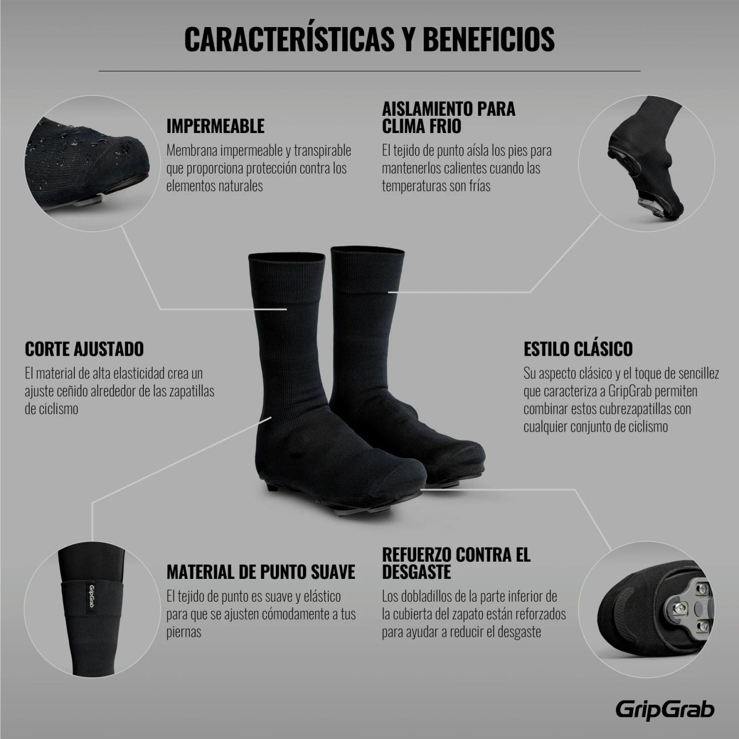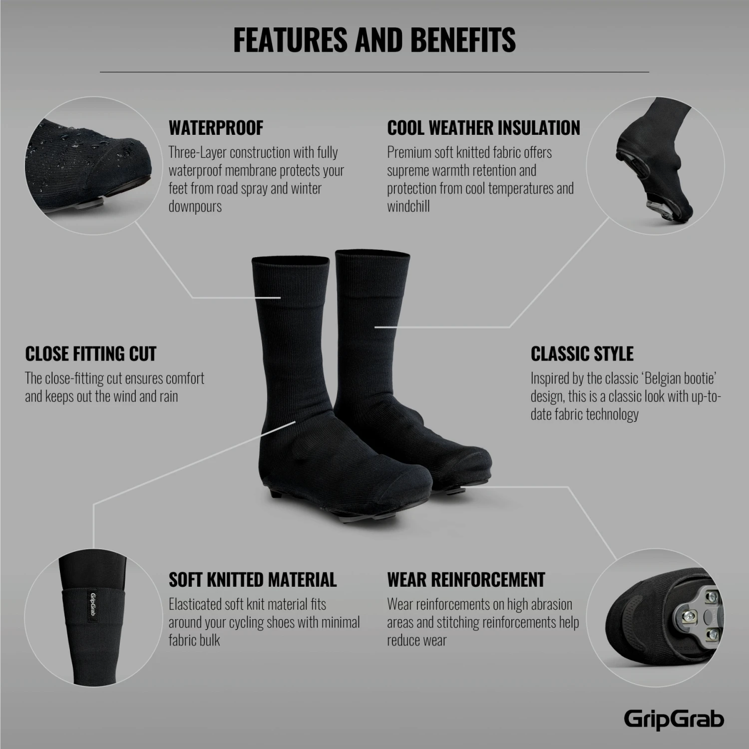 Kenmerken van de GripGrab Flandrien Road waterdichte gebreide overschoenen