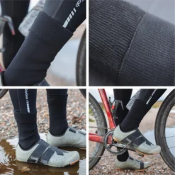 Om het binnendringen van water via de bovenkant van de schoenovertrek te verminderen, adviseren wij om waterafstotende beenwarmers of fietsbroeken over de bovenkant van de schoenovertrek te dragen. Wij raden ook aan de openingen en gaten in de zolen van de schoenen te dichten om te voorkomen dat er water van onderen binnendringt. Als u deze tips volgt, is het water het best beschermd.