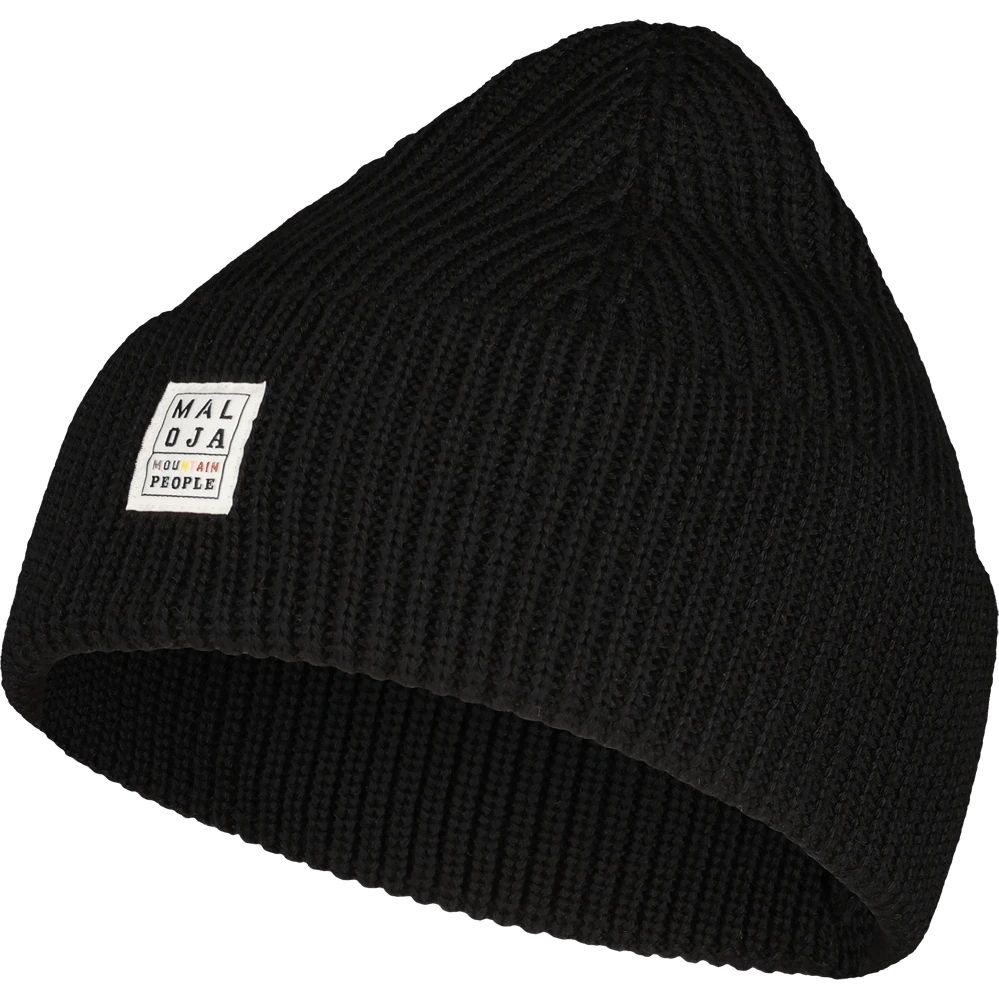 Effen merinos muts met omslag, Maloja-patch op de omslag.
