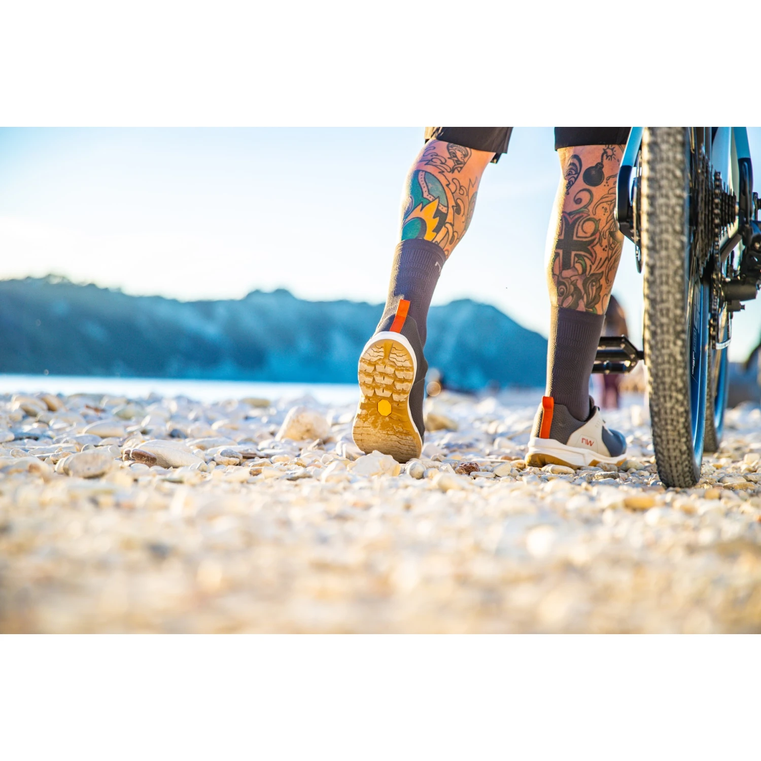 - De platte Vibram-Volt zool zorgt voor maximale veiligheid en comfort bij het plat trappen. Dankzij de brede voorkant en de noppen in de hielzone biedt de zool grip op de pedalen en op elk terrein.
