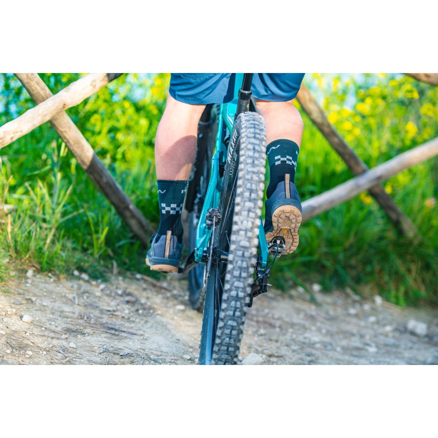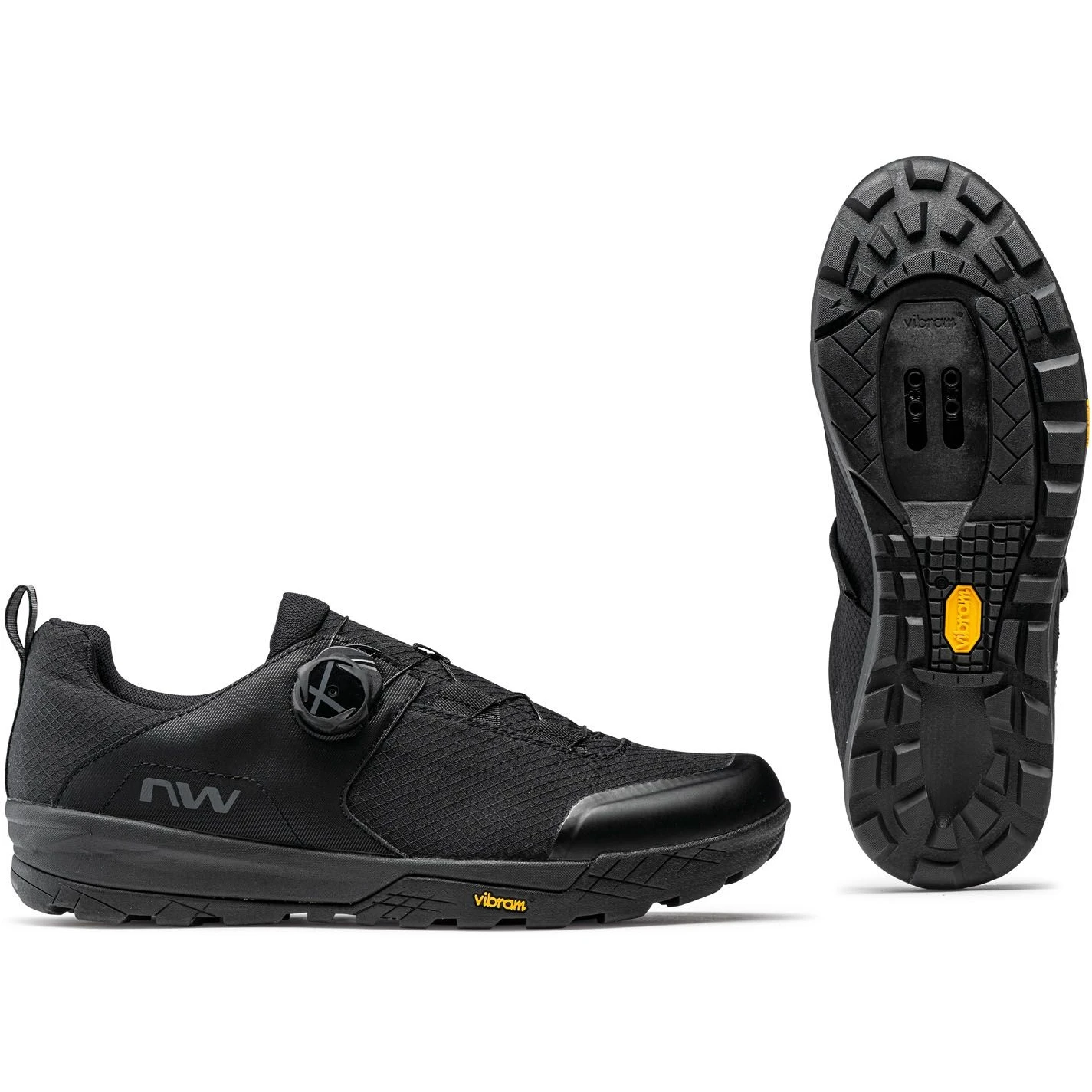 Clipless Vibram zool met geoptimaliseerde vorm voor gemakkelijk in- en uitklikken. Hij biedt grip en stabiliteit met zijn grote platte oppervlak rond het klikpunt. Het zoolprofiel is ontworpen met grote nokken en brede gebieden voor drukontlasting, voor tractie en controle op elk terrein. De tussenzool met hielkussentjes absorbeert trillingen optimaal en zorgt voor maximaal comfort op alle ondergronden.