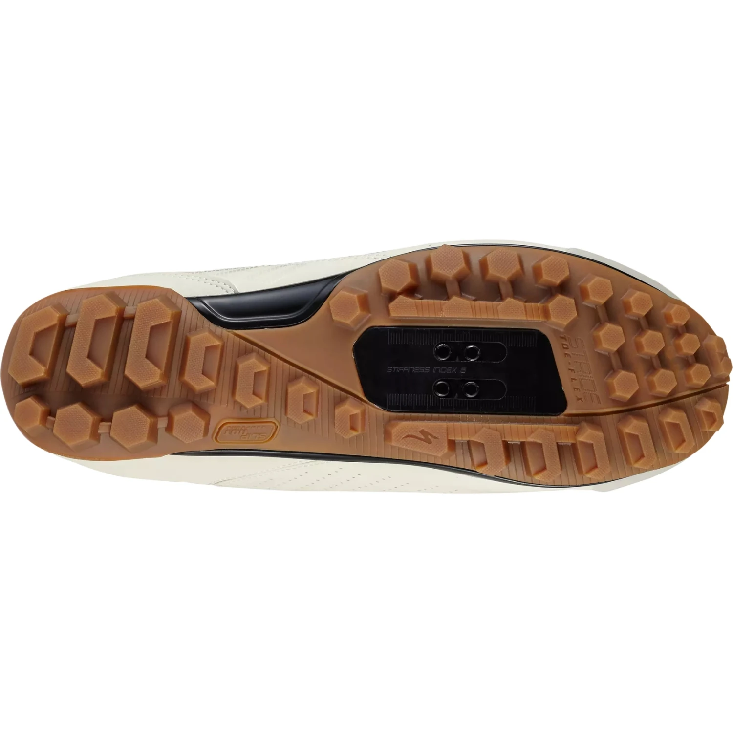 - STRIDE Toe-Flex technologie voor een natuurlijke teenbeweging in de schoen buiten het zadel zonder in te boeten aan stijfheid tijdens het trappen (stijfheidsindex: 6,0)