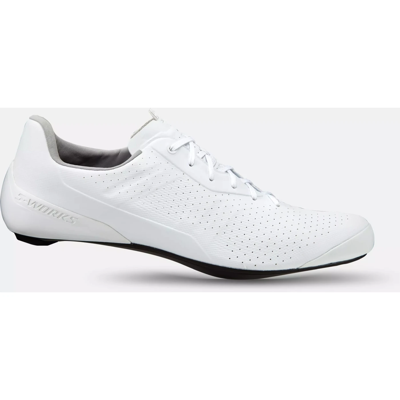 Comfort: De S-Works Torch Lace maakt gebruik van de nieuwe vorm van de voorvoet. Deze is 4 mm breder bij de bal van de voet dan bij de S-Works 7 en is het resultaat van uitgebreide 3D voetscans en Retül-gegevens. Het bovenmateriaal is speciaal aangepast voor het veters strikken van racefietsschoenen en heeft een andere structuur in verschillende zones. Het is extreem flexibel en past zich gemakkelijk aan de respectievelijke voetvormen aan. Tegelijkertijd is het stevig genoeg om niet uit te rekken tijdens lange ritten en voor een stevige en stabiele pasvorm te zorgen. De asymmetrische hielkappen verminderen oncomfortabele contactpunten met de enkel en zorgen voor stabiliteit in de knie.