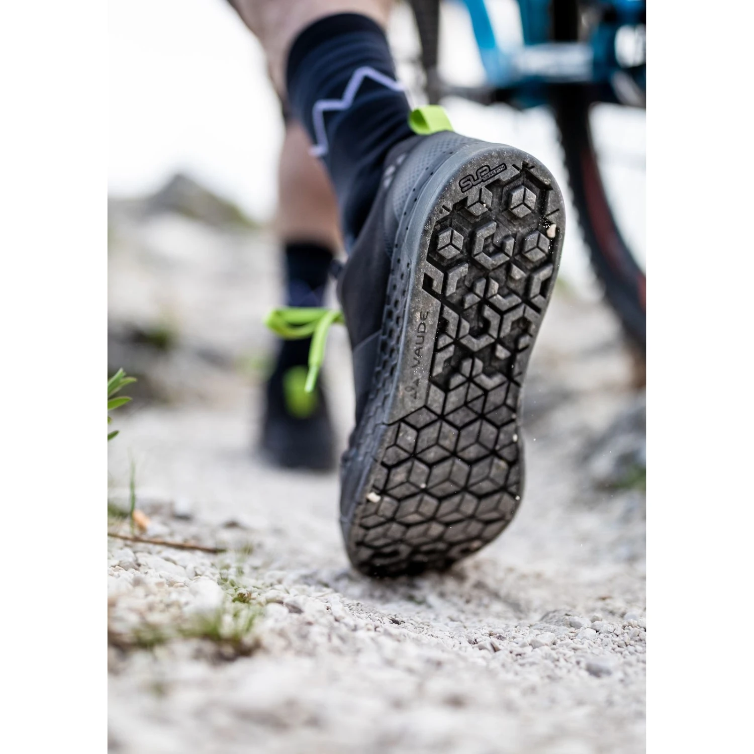 Het getrapte Hexagon profiel in het pedaalgedeelte in combinatie met het zachte SUPtraction® Flat rubber compound zorgt voor perfecte grip op het pedaal en veel rijplezier. In het teen- en hielgedeelte heeft de zool een dieper profiel dat zorgt voor de nodige grip bij het dragen en duwen van passages. Bovendien werken de zeshoeken als schubben die bij het lopen in de grond klemmen en zo zelfs in kritieke passages voor een stevige grip zorgen.