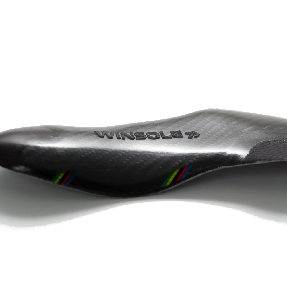 Met de gepatenteerde Winsole fietsschoenzolen is een systeem ontwikkeld dat een optimale drukverdeling bereikt en tegelijkertijd verkeerde posities compenseert en slijtage voorkomt. Met dit systeem hoeft de schoen niet te worden opengesneden, opnieuw opgebouwd en gelijmd en behoudt hij dus zijn oorspronkelijke vorm en stabiliteit.